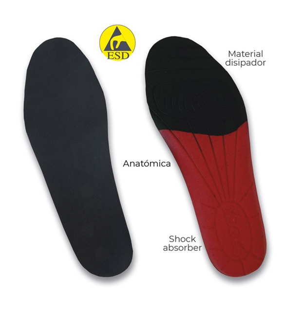 Palmilha IBISAFE® “0 Perfuração” Memory Foam anatómica, anti estática forrada a microfibra.