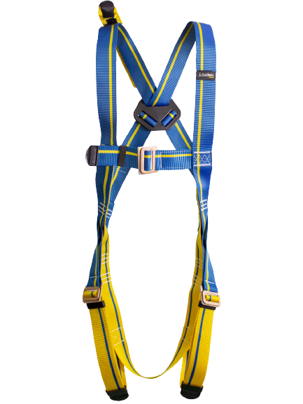 Arnês anti-queda leve e resistente com 1 ponto de ancoragem dorsal.