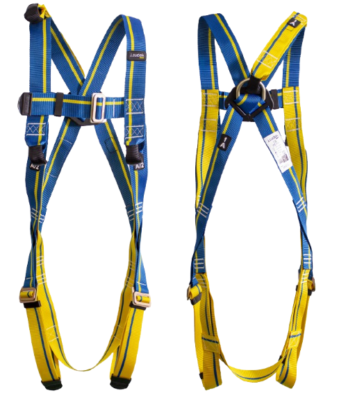 Arnês anti-queda leve e resistente com 2 pontos de ancoragem dorsal.