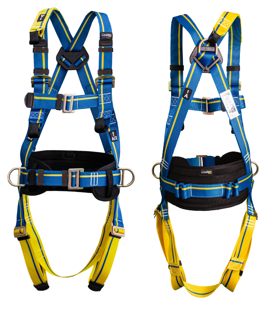 Arnês anti-queda com 2 pontos de ancoragem + cinto de posicionamento.