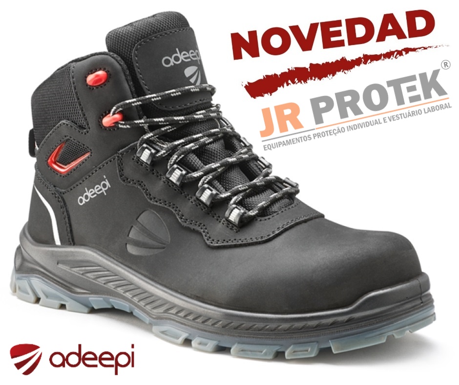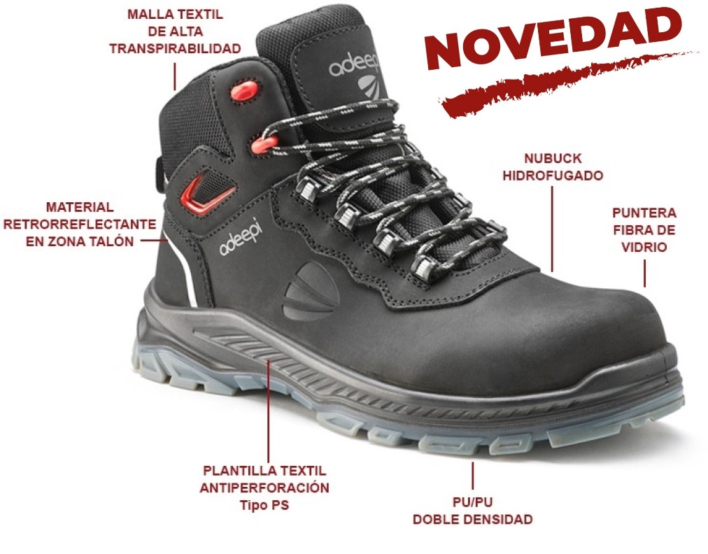 Bota em pele Nobuck hidrófuga com apontamento refletor no calcanhar.
