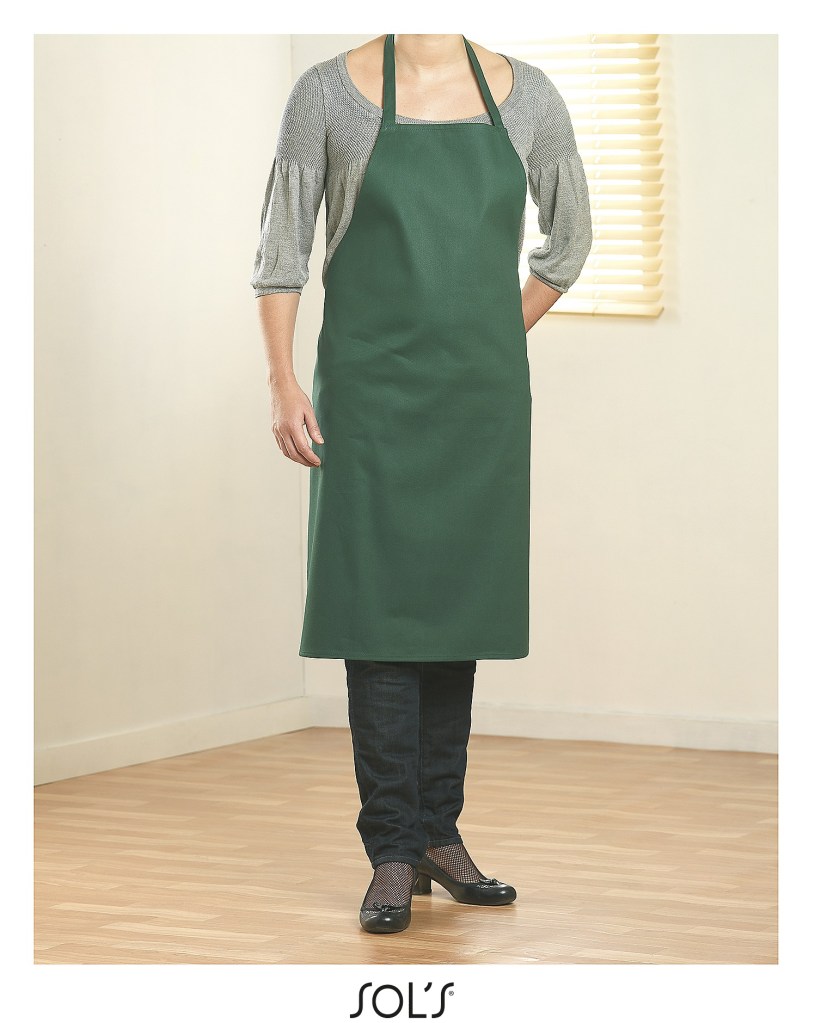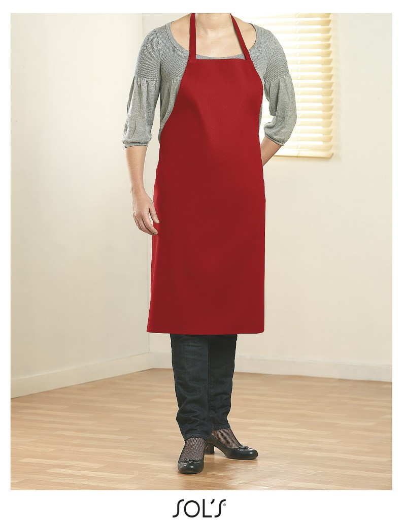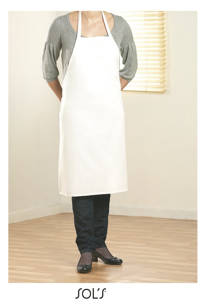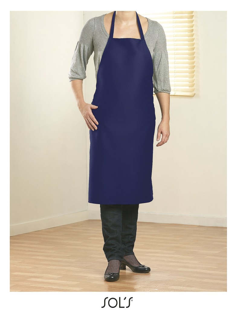 Avental sarja com decote direito.