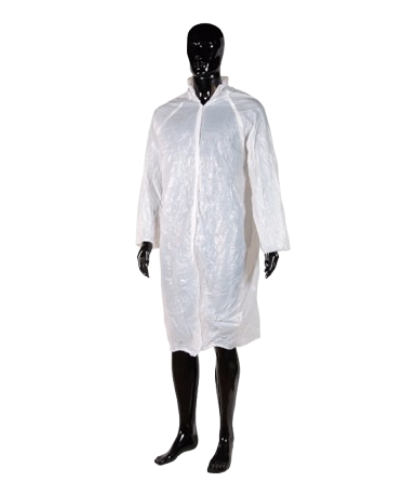 CARACTERÍSTICAS:Bata descartável em polipropileno não tecido.Aperto frontal por velcro.Elástico nos punhos. Hipoalergénica.Embalada individualmente.CORES: Branco