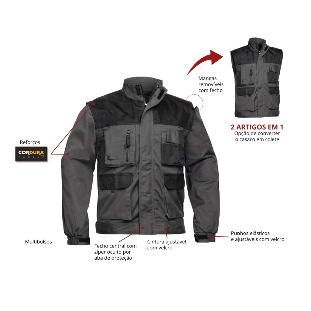 Blusão Stretch de algodão elástico e mangas removíveis.