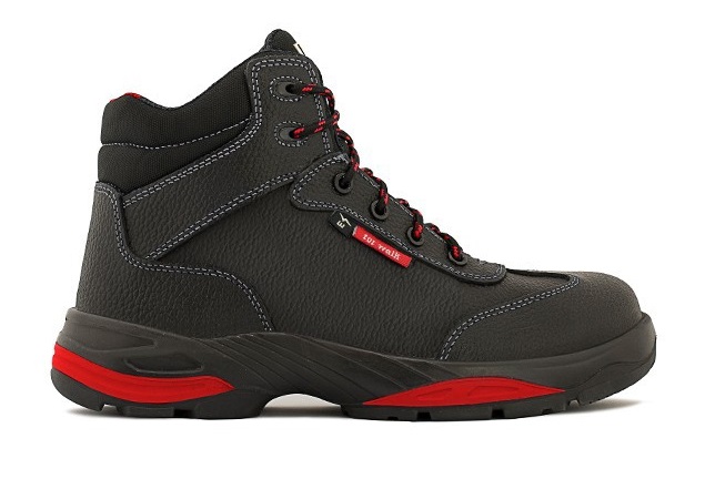 Sola em PU e borracha de nitrilo resistente a hidrocarbonetos.