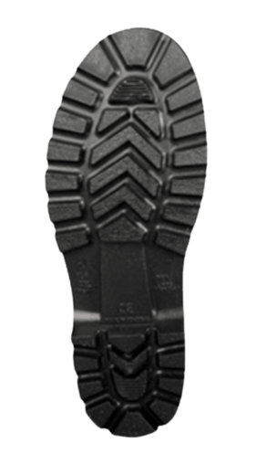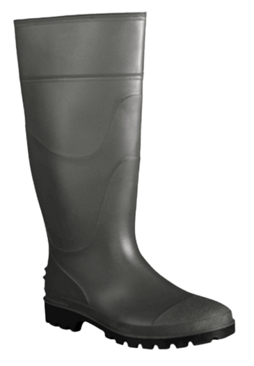Bota preta em PVC sem proteção.