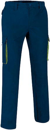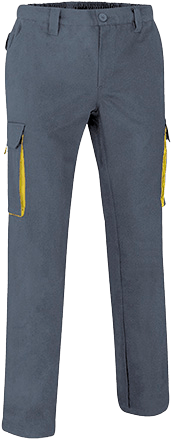 Em sarja de algodão/poliéster de elevada durabilidade e resistência.