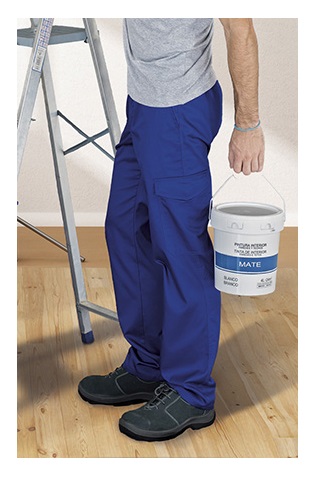 Em sarja de algodão/poliéster de elevada durabilidade e resistência.