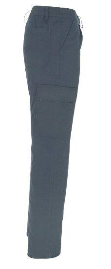 Em sarja de algodão/poliéster de elevada durabilidade e resistência.