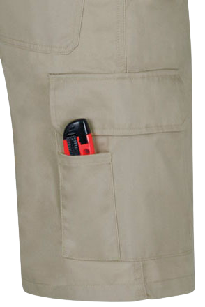 Em sarja de algodão/poliéster de elevada durabilidade e resistência.
