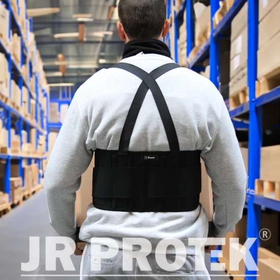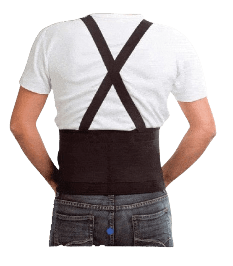 Cinta de apoio para as costas, respirável e anatomicamente moldada.