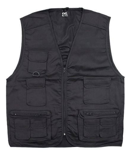 CARACTERÍSTICAS:Colete tipo Reporter / Safari.Tecido alta resistência.Multibolsos (11 bolsos).Fecho ziper.