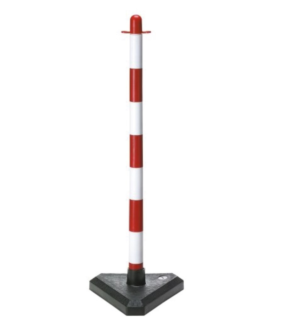CARACTERÍSTICAS:Coluna desmontável em plástico.Compatível com corrente plástica de 6mm e 8mm.Base em cimento com cobertura plástica preta anti-choque.Altura: 0.90m.Cor base: PretoCor coluna: Vermelho e branco.