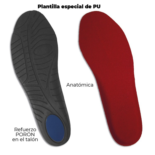 Palmilha anti estática, anti bacteriana e anti fungos.