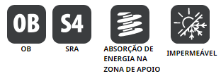 Com absorção de choque na zona do calcanhar.
