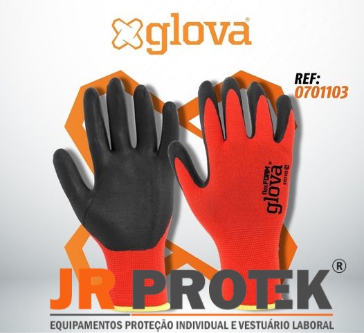 Luva nylon/spandex vermelho, fibra de carbono e nitrilo.