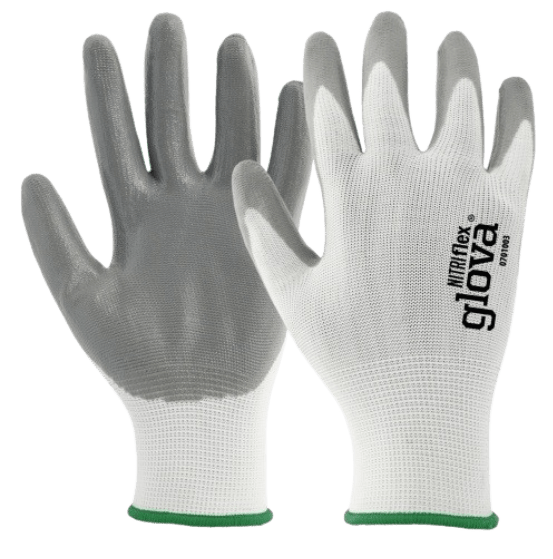 Suporte em malha de poliéster com revestimento a nitrilo cinzento.