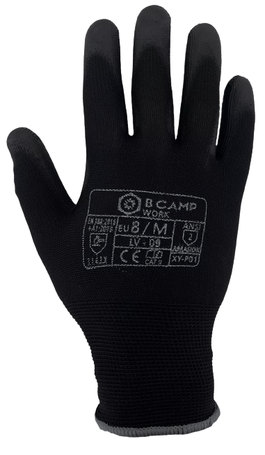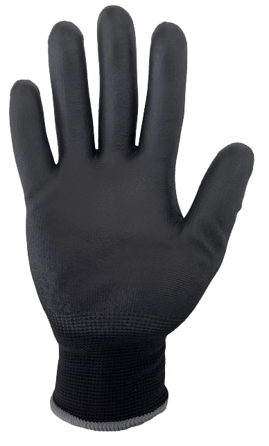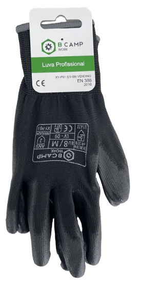 Luva de ligeira de malha revestida a poliuretano (PU).