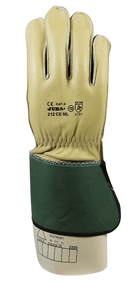 Luva de pele ajustável por cima de uma luva dielétrica..