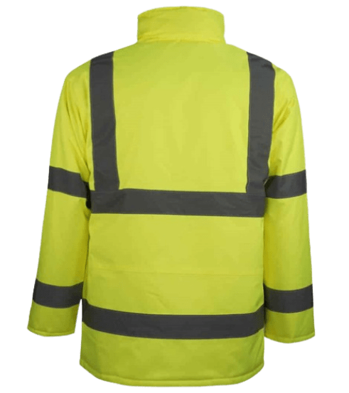 Parka acolchoada de alta visibilidade em tecido Oxford.