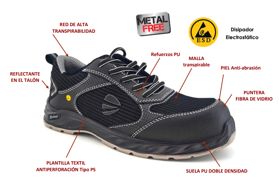 Palmilha interior antiestática, antibacteriana e antifúngica.