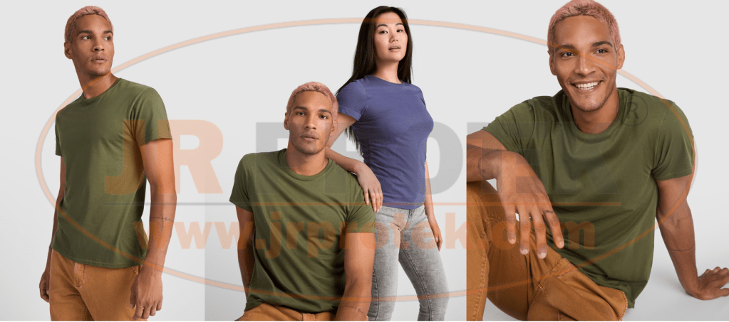T-shirt manga curta e decote redondo duplo com elastano ligeiro.