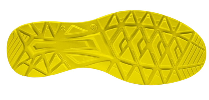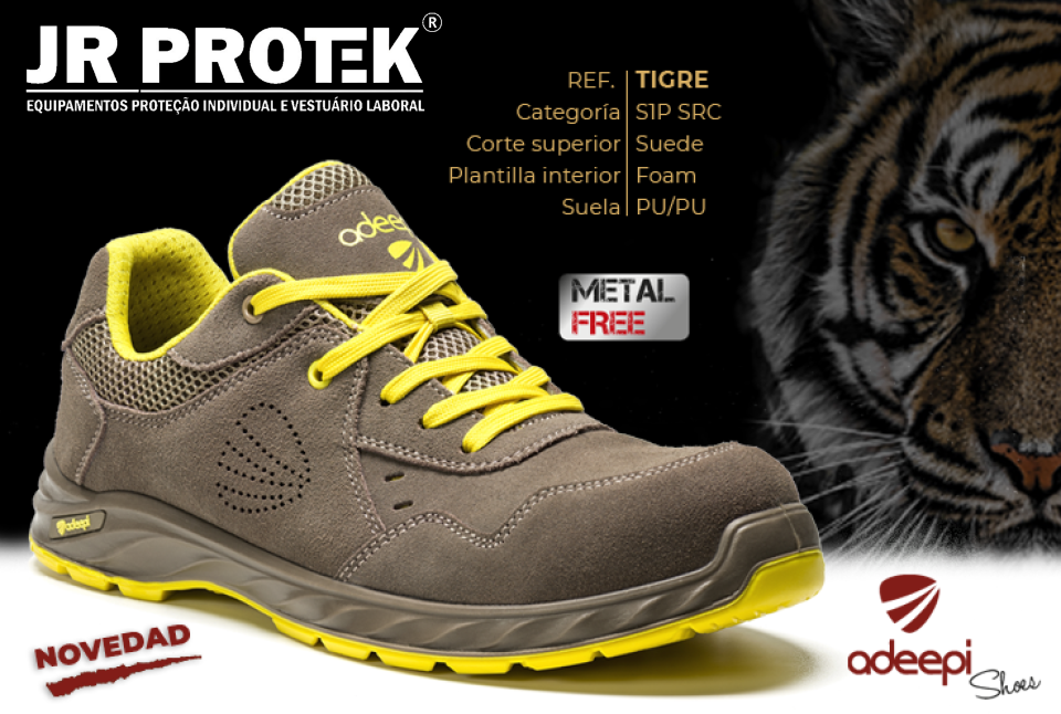 S1PS inclui: sapato base + zona fechada do calcanhar + antiestático (A) + absorção de energia no calcanhar (E)+ sola resistente à perfuração (sola não metálica tipo PS).
